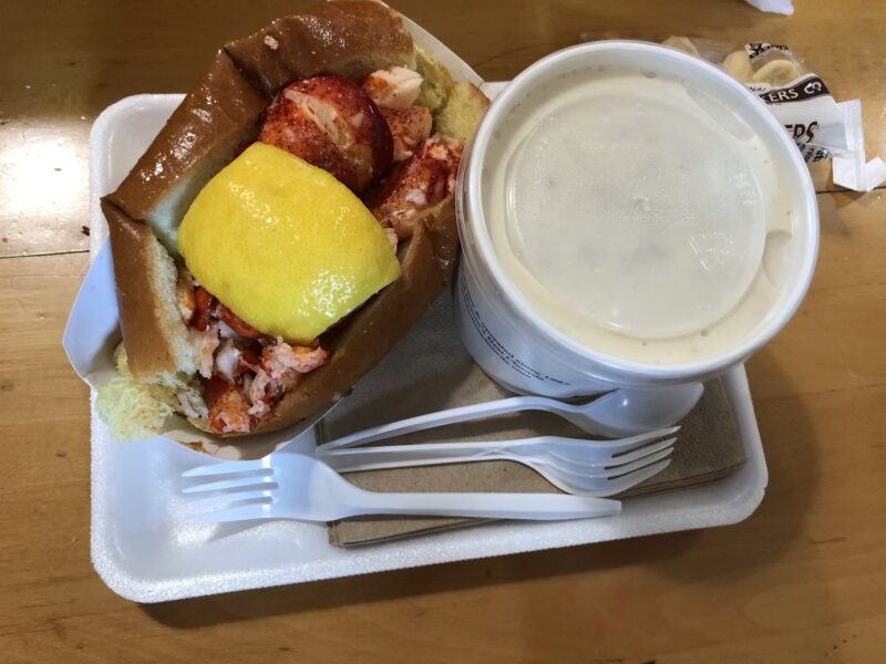 Boston Chawda Coというところでロブスターロールとクラムチャウダーをいただきました。