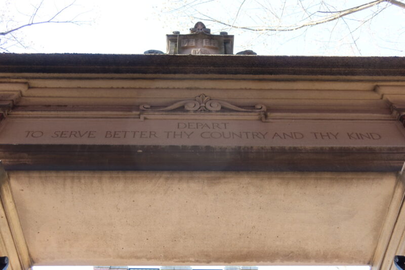 大学の入り口にはEnter to Grow in Wisdom(知恵を深めるために入り)出口には、Depart to serve better thy country and thy kind (よりよい世界をつくるために旅立つ)というメッセージが刻まれていたのが印象的でした!