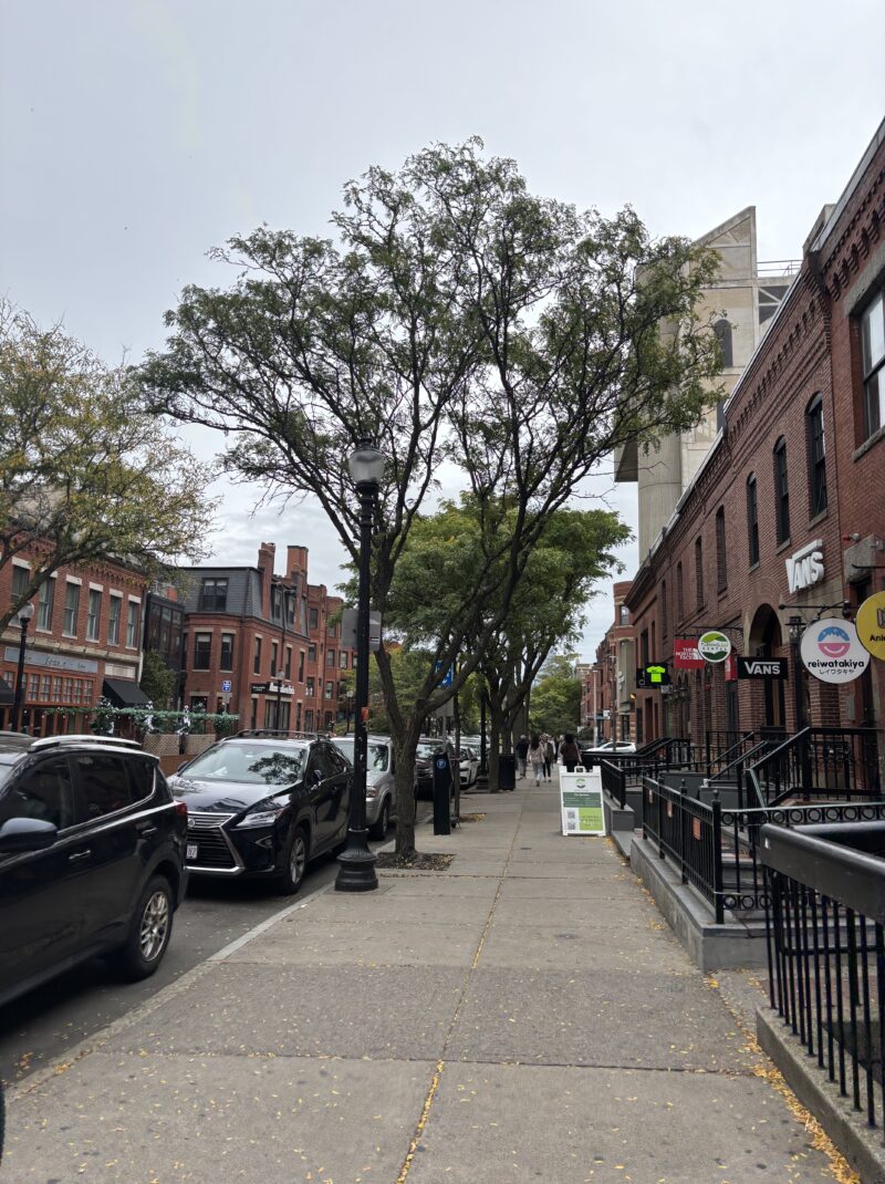 19世紀に建てられた歴史あるブラウンストーンの建物が並ぶョッピング街。